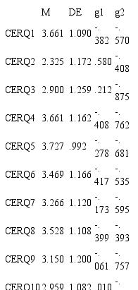 Palabras clave: estrategias cognitivas de regulación emocional, CERQ, validación, adolescentes.