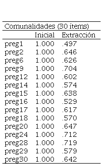 Nota. El método de extracción utilizado fue el análisis de componentes principales. preg=preguntas aplicadas en el cuestionario.