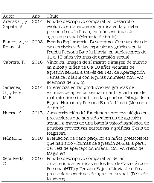Palabras clave: pruebas gráficas, pruebas narrativas, psicodiagnóstico, abuso sexual, niños víctimas.
