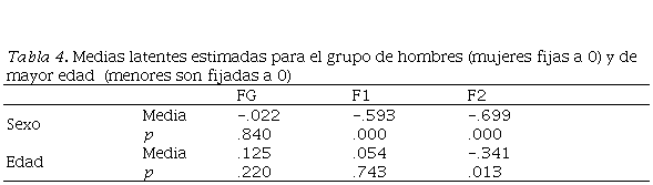 Una vez determinado el nivel de invarianza, se procedió a comparar las medias latentes (ver Tabla 4), no se observan diferencias estadísticamente significativas para el FG de resiliencia para ambas variables de agrupación. Solo se aprecian diferencias estadísticamente significas en algunos factores específicos, que, sin embargo, no pueden ser interpretados debido a su baja fiabilidad.
