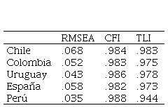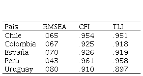 El modelo presenta un ajuste aceptable en los cinco países (Tabla 5), lo que satisface la H1.