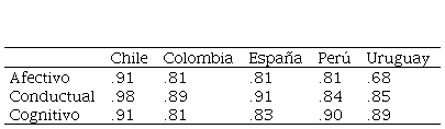 - Cuestionario de Compromiso Escolar. Desarrollado por Lara et al. (2018). Es un cuestionario que mide las tres dimensiones del compromiso escolar: afectivo (10 ítems), conductual (7 ítems) y cognitivo (12 ítems). Los 29 ítems se encuentran en escala tipo Likert de 5 puntos (desde 1: nunca o casi nunca hasta 5: siempre o casi siempre). El instrumento presenta evidencia a favor de la validez estructural en los 5 países (Tabla 1), con valores de RMSEA entre .035 y .068, CFI entre .982 y .988 y TLI entre .944 y .983 y buenos índices de fiabilidad como consistencia interna (Tabla 2) con valores de omega entre .68 y .91 para el compromiso afectivo, entre .84 y .98 para el compromiso conductual y entre .81 y .91 para el compromiso cognitivo. Cabe señalar que la estructura del cuestionario fue distinta entre los países (ver artículo de validación en esta misma edición).