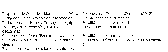Revisiones sistemáticas sobre el tema, identificaron habilidades blandas que fomentan resultados positivos en la fuerza laboral, pero también para la prevención de la violencia y la salud sexual y reproductiva (Gates et al., 2016). En concreto, Robles (2012) identificó diez habilidades blandas como las de mayor relevancia para los empleadores: integridad, comunicación, cortesía, responsabilidad, habilidades sociales, actitud positiva, profesionalismo, flexibilidad, trabajo en equipo y ética laboral. En esta línea, estudios como los realizados por González-Morales et al. (2010) o Penzenstadler et al. (2013), coinciden en señalar a la capacidad de análisis, habilidad comunicativa o sensibilidad frente a problemas del cliente, como las más solicitadas en el ámbito laboral (Tabla 1).