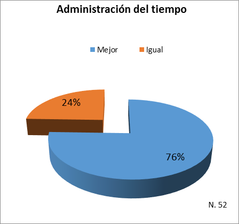 En la Figura 22 se consignan las respuestas, sobre el uso del tiempo. Manifestaron haber mejorado, algunas comentaron que se organizan para poder ir a comprar la materia prima a lugares con mejor precio (generalmente se trasladan al D.F.), y que gracias al financiamiento han podido acceder al uso de taxis o bicitaxis, reduciendo los tiempos de traslado; algunas manifestaron que ver que el negocio está rindiendo utilidades las motiva y han podido armonizar las actividades del mismo, con el cuidado de los hijos y las labores del hogar y que les da tiempo de llevar a cabo las tres tareas.