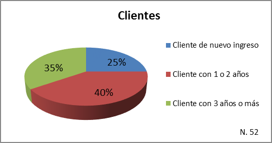 De las y los 52 clientes que conforman el universo muestreado sólo el 35% corresponde a aquellos que iniciaron operaciones con esta sociedad y aún siguen utilizando el crédito que la misma les otorga, es decir tienen más de tres años trabajando con esta organización. Los clientes que han accedido al crédito por primera vez son 25% mientras 40% ha utilizado el crédito por uno o dos años (Figura 7).