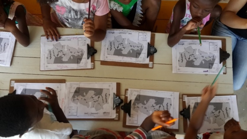 Las condiciones particulares de “La Hacienda”, así como de por lo menos otras dos comunidades más en esta región de Cuicatlán-Oaxaca, no corresponden al patrón de identificación de la población afromexicana, pues se les registra básicamente por su asentamiento en las “costas”, ya sean las del Pacífico o en el oriente en la parte costera del Golfo de México –el Atlántico–. Mientras que esta comunidad se encuentra enclavada en una región alejada de las costas, entre ríos y cerros, inserta entre comunidades con adscripción “indígena”, como lo señaló el propio director de la escuela: “siempre ha sido de puros morenos… ahí viven ellos, nosotros al lado, somos de otra comunidad de mayoría indígena”. Estas relaciones y quizá conflictos interétnicos, conllevan a una serie de interrogantes sobre las formas de racialización, internas y externas, por lo que se requiere profundizar en los trayectos históricos de estas comunidades. Además de las historias imbricadas sobre las haciendas, la producción agrícola y azucarera, que se hacen presentes a partir de los talleres desarrollados con las y los docentes, consideramos las perspectivas metodológicas de las “Cartografías Sociales” y los “Estudios de las Memorias a través de horizontalidad y diálogo” (Medina, 2016).