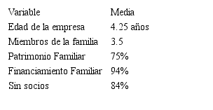 En lo correspondiente a la edad de la empresa, Miembros de la familia incorporados a la empresa, Patrimonio y Financiamiento; la edad media de las empresas participantes es de 4.25 años, ya que algunas de ellas tienen más de 10 años en el mercado y otras escasamente uno; en ellas participan en promedio 3.5 miembros de la familia, y el 75% la considera como patrimonio familiar, ya que el financiamiento que obtienen proviene de la generación de utilidades o del dueño (94% de la muestra lo considera así), por lo que el 84% no tiene intervención de socios que no son consanguíneos.
