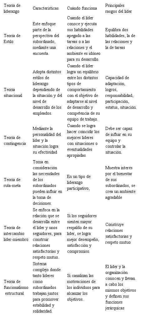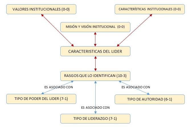 Este cuadro especifica lo que las entrevistas arrojaron sobre los aspectos antes mencionados del líder y sus rasgos, características e influencias; se tomaron las categorías que más se repetían en el programa Atlas-ti y de ahí se conjuntaron familias de categorías que permitieron ver los que tenían mayor incidencia. Después de ello, se dio a la tarea de analizar en dependencia de la teoría cual se adecuaba más al estilo de líder que se estableció con lo que se notó que el liderazgo situacional es el que mejor se adecúa a las diversas instituciones y su contexto.