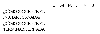 Donde la respuesta muy cansada y extremadamente cansada, correspondiente a los números 3 y 4 corresponde o se agrupan en la categoría de fatiga laboral.