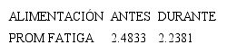 Se encontró que los pescadores que desayunan antes de iniciar su jornada laboral tienen una fatiga de (2.4833), mientras que los pescadores que se alimentan durante su jornada laboral presentaron una fatiga de (2.2381) es decir no existe gran diferencia en la fatiga que presentan si desayunan antes o durante su jornada laboral.