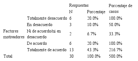 Un porcentaje similar (63 %) de las respuestas proporcionadas por la muestra en cuestión, aceptó percibir factores motivadores durante el desempeño de sus actividades: