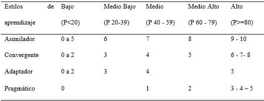 En cuanto a los demás estilos de aprendizaje, a partir de lo evaluado, puede decirse que los estudiantes de Psicología presentan preferencias a nivel medio en cuanto al procesamiento de grandes cantidades de información y el empleo de conceptos abstractos, así como una importancia a la validez lógica y coherencia de sus ideas, en detrimento de la utilidad práctica de las mismas (estilo asimilador); y a su vez, se trata de alumnos impacientes, que gustan de tener gente para debatir y hallar soluciones a conflictos, poniendo el foco en el aprendizaje en la aplicación y experimentación de ideas según el valor práctico de las mismas (estilo pragmático).