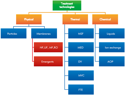 Thermal separation technologies used for desalting, include Multi Stage Flash Distillation (MSF), Multieffect Distillation (MED), Dewvaporation, Steam Compressing Distillation (VCD) and Freezing and Defreezing (Freeze Thaw Evaporation). MSF and VCD are robust and mature technologies used in the water treatment industry with good results for the removal of contaminants.