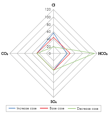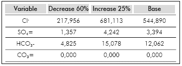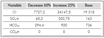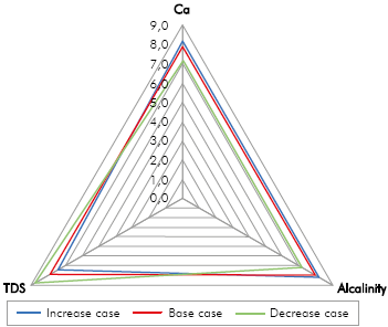 As showed in equation (6) the Ionic Strength (I) depends on the TDS term; thus the posed scenarios should be taken into account. Therefore and noticing data of TDS provided in table 2:
