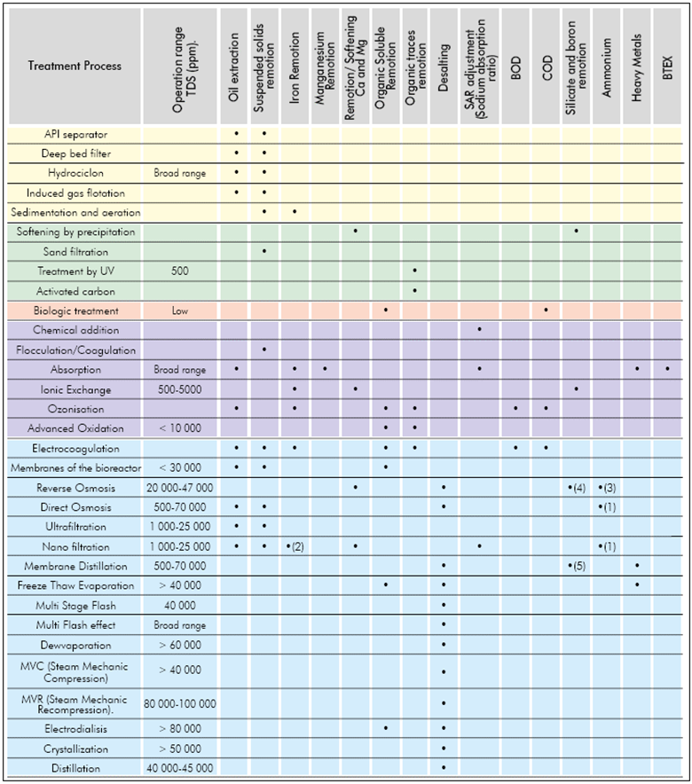 Hussain, A., Minier-Matar, J., Janson, A., Gharfeh, S. & Adham, S . (2014). Advanced technologies for Produced Water Treatment and Reuse. SPE International Petroleum Technology Conference. Doha, SPE-17394.