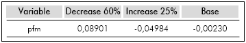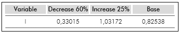 As previously defined, the following scenarios will be observed: (1) Increase of up to 25% of sensibiliser variable, (2) Base case and (3) Decreased down to 60% of the sensibiliser variable. Therefore