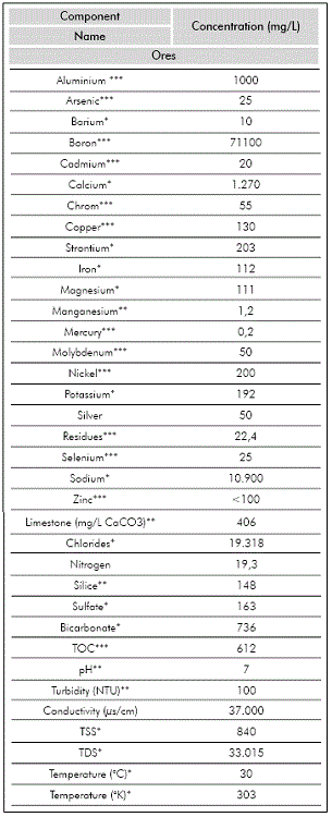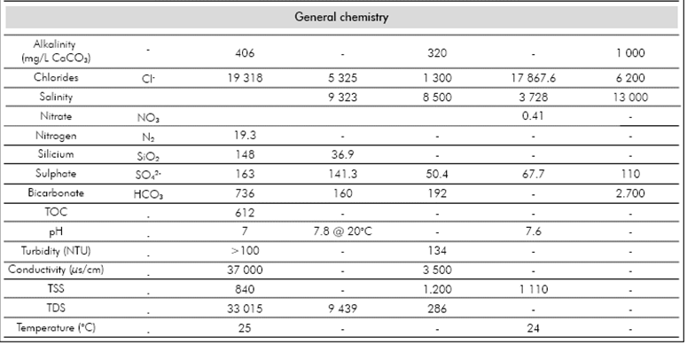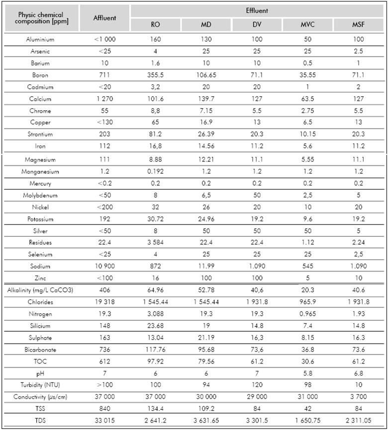 Apart from the components shown in Table 3, it is important to highlight other component to be considered in the selection of the technologies: such component is TDS, as each technology operates according to a given range of the variable, as shown in Table 1. For this case study it is important to take into account that the returned water provides a TDS concentration of 33 015 ppm (Table 3).