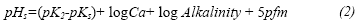 Puckorius Scaling Index (PSI): Similar to the developed Ryznar index. This index is based on the buffering capacity of water and the maximum quantity of precipitate that can form in bringing water to equilibrium. If PSI < 4,5 indicates that scaling may occur. If 4,5 < PSI < 6,5 indicates no corrosion. If PSI > 6,5 indicates tendency to corrosion. This index is calculated in the following way (Guevara, 2013; Roberge, 2000):