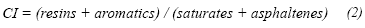 The colloidal index (CI) is used to determine the colloidal stability of bitumens, expressed by the following relationship:
