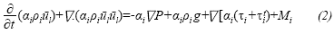This method analyzes each phase using one equation for each transport phenomenon. Equations (1) and (2) show the conservation of mass and momentum for phase i (Siemens, 2014).