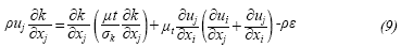 The gas-liquid two-phase flow has a turbulent dynamic which has to be taking account in the CFD models. In this research, the k-ε turbulence model was used to close the consecutive equations for both models. Equations (9) and (10) show the PDE equations describing this model (Ratkovich, Majumder & Bentzen, 2013).