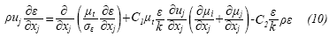 and C2 are 1.2, 1.0, 1.44 and 1.9, respectively. Finally, the turbulence effect on the viscosity (turbulent viscosity, μt) has to be involved in the conservative equations using the effective viscosity (μeff) as shown in the equation (11).