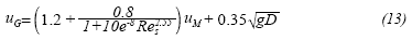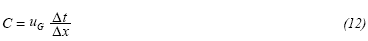 Where C is the Courant number (≈0.25), Δt is the time-step and Δx is the mesh cell size in direction of the maximum fluid velocity component. The velocity uG is calculated by the Drift-Flux model (Ujang et al.. described in Equation (13).