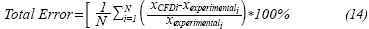 The VOF model in Figure 4 establishes that increasing the mesh cells number in the grid will decrease the error between the simulation and the experimental results. When considering the first selection criterion that standard deviation is 10 % for the experimental result, only the grid with 415 140 mesh cells could model the system correctly. On the other hand, the Eulerian model results demonstrate that resulted accuracy is not modified by the number of mesh cells. Furthermore, these results show that simulations with Eulerian model obtain an error equal to the standard deviation of the experimental results.
