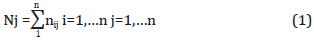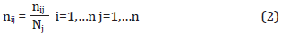 2. Add up all resulting values for every column N¡ (see Equation 1) . Then, divide every njj by Nj to normalize them (see Equation 2); the resulting matrix is M(nxn):