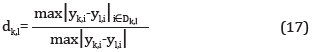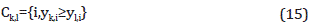 3. Determine Nonconformity (Dkl) and Conformity (Ckl) sets. Conformity set results from comparing every element of Ymxn according to its j and i indexes and Yj,i values, therefore, nonconformity set elements are the i indexes that are not present in Ckl: