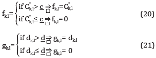 6. From the thresholds calculated in Equation 17 and Equation 18, determine Conformity Supremacy Fmxm and Nonconformity Supremacy Gmxm matrices. All elements of Fmxm (fk,l) and Gmxm (gk,l) take the value of C*k,l and dkl, respectively, if a condition is fulfilled (See Equation 19 and Equation 20) and the main diagonal is empty due to its derivation from C*mxm and D*mxm.
