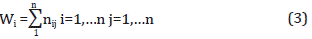 3. Add up all nij values for every row of M(nxn) (see Equation 3) to determine the priority vector