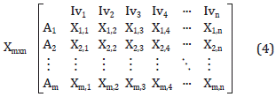 Where, i stands for Iv (Input variable) index and j for A (alternative) index.