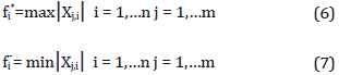 1. Determine the best value (fi*) and the worst value (fi) in every lv in Xmxn (see Equation 4) matrix: