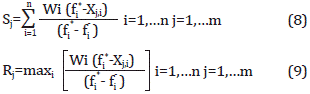Where, Si is the distance of the i th alternative to the "positive ideal solution (best combination)", Ri is the distance of the i th alternative to the "negative ideal solution (worst combination)" [7.
