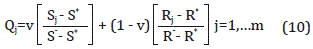 Where, S* is the Minimum value of Sj, S is the Maximum value of Sj, R* is the Minimum value of Rj, R is the Maximum value of Rj and v ranges between 0 to 1. When v is 1, this means that the selected alternative is selected by unanimity (with regard to which Ivaffects the selection more) and 0 means that there is no consensus between the decision makers [8].