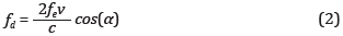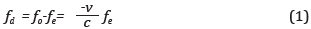 Where fO is the frequency of the pressure signal at the observer, fe is the frequency of the emitted pressure signal, fd is the change in frequency and C is the speed of light in a vacuum.