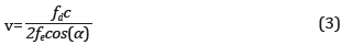 where a is the angle between the straight line along which the particle is moving, and the straight line between particle and receiver. Note in Eq. (2) that when the change in frequency and the frequency of the emitted signal are known, then the velocity of the particle can be found as