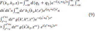 Similar to the 1D ISS internal multiple elimination algorithm [40] it is useful to introduce two intermediate functions F(k1,k2,z) and g(k1,k2,z) as follows: