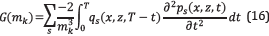 where T is the recorded time and t is the time variable, ps is the forward wavefield generated by the source src(x,z); qs is the backward pressure wavefield generated by the residual data (the difference between the modelled and acquired data); s represents a specific shot; each shot produces its own gradient and therefore, the final gradient per iteration is the summation of all the gradients.