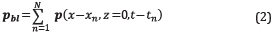 A blended data or super-shot pbt in terms of the pressure wavefield at the surface of a single shot located in the position x0 and the time delay t0, p(x-x0,z=0,t-t0 ), can be defined as the convolution (*) between the pressure wavefield and the matrix A, as