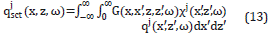 and qjset (x,z,ω) is the scattered contribution to pressure field given by