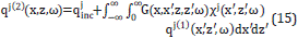 Such Born approximation can be considered a member of an iterative solution often called Neumann series, for which (14) is taken as the first term (i.e., qj (x,z,ω)=qj[1] (x,z,ω)) and the second term is calculated as