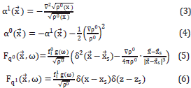 With all these ideas in mind, a formal deduction is possible from the Helmholtz equation (see [6] or [7]) the Cauchy's equations following three steps: (a) Writing the perturbative expansion (analogous to Equation 1) of the pressure, density, particle velocities in the medium, and wave sources. Then inserting such expansions in the Cauchy equations. These equations are taken with sources symbolized by an impulsive function f. (b) Changing the pressure field to an auxiliary variable qi (