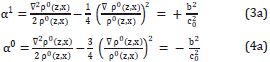 where pcons is a quantity showing density units; however, in the simulations shown here under, this quantity is irrelevant in all equations for the pressure field, as it is algebraically canceled in the expressions. Equation 8 is the relation that we use in this work for modeling of the wave propagation. A general form of the density profile that satisfies simultaneously the Equations 3a - 4a, for arbitrary constants α0(