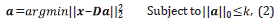 The OMP algorithm can be stated as follows: Firstly, initialize the residual r=x then select in each step, the atom Di with the highest correlation with to the current residual signal r, this step can be thought of as a comparison between each atom D,-to and the current residual. Once the atom D, is selected, the signal is orthogonally projected to the span of the previously selected atoms including Di the residual is recomputed, and the process is repeated from the beginning (see algorithm 1 in Table 1). The reader is encouraged to note that line 5 presents the greedy selection step, and line 6 shows the orthogonalization step. [17].