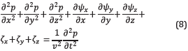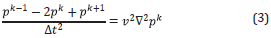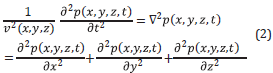 Now, substituting the second derivatives given by Equation 5 in the acoustic wave equation in (2), we have