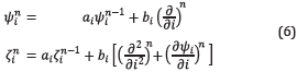 where ψi and ζi are two additional wavefields that are computed recursively on each time step as follows