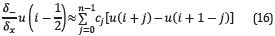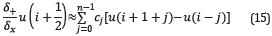 where cj are the first derivative coefficients of the FDTD stencil.