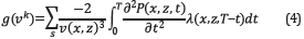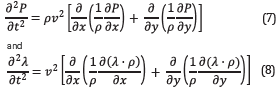 where P is the forward wavefield generated by the source, λ is the backpropagated field of the residual data (the difference between the modeled and acquired data) and s varies according to the number of sources.